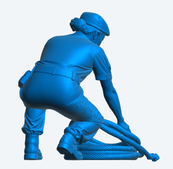 N32 modern female Royal Navy deck crew figure, shown crouching while handling a coiled rope. This unpainted, multi-scale figure captures an authentic moment of deck work, making it ideal for line handling, mooring, and general seamanship scenes on modern naval vessels.