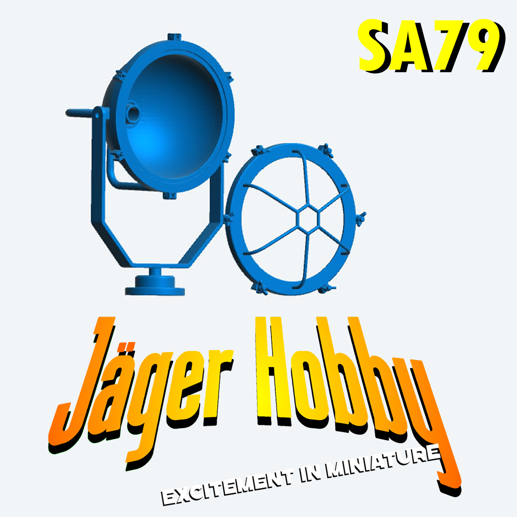 The SA79 Classic Hand Adjustable Ships Spotlight is a highly detailed scale model accessory, designed for RC ships, tugs, workboats, and harbour vessels. Like SA78, it features a hand-adjustable mount, allowing the spotlight to be tilted and rotated for realistic operation.