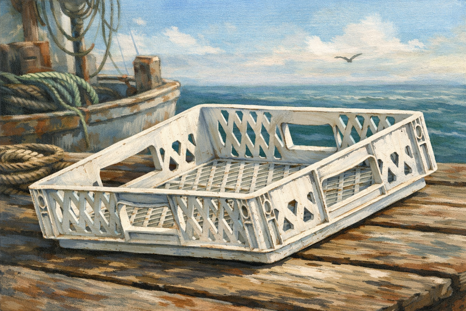 SA98 is a realistic commercial fishing boat plastic tray, commonly used on working vessels, quaysides, fish markets and processing areas. Like the real items, these trays are not made to a fixed modelling scale, as full-size trays vary widely depending on task and vessel.
